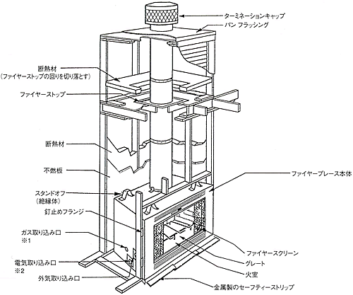 ■煙突設置基準煙突の働きは、暖炉やストーブの炉内の排気ガスを速やかに屋外へ排出する事です。
